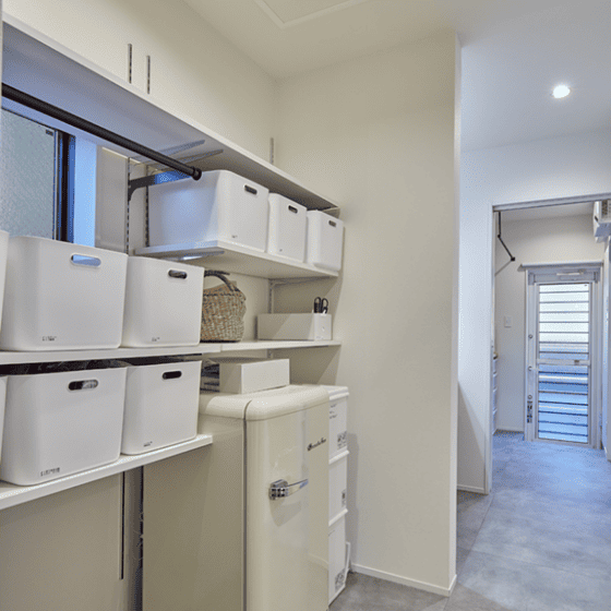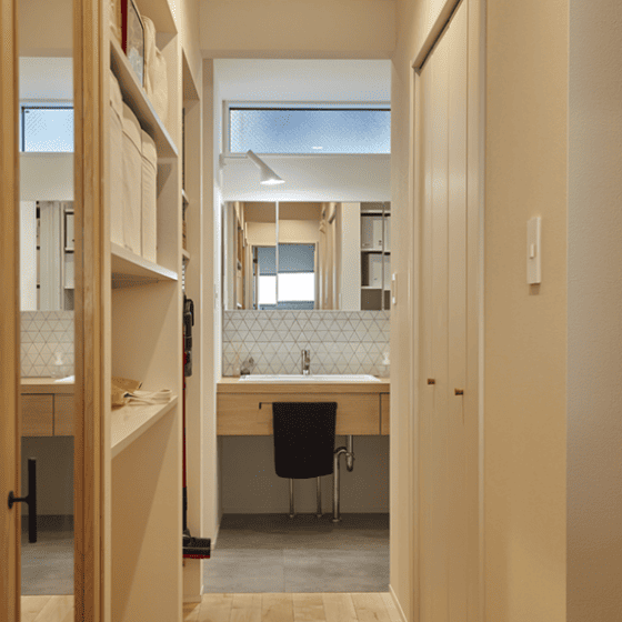毎日の家事がストレスなくこなせるよう、キッチン・洗面・ランドリースペースをぐるりと回遊できる間取りにできます。動線が短く、行き止まりのない設計は、移動や作業の負担を軽減してくれます。忙しい日々でもスムーズに動けることで、家事の時間にゆとりが生まれ、暮らし全体に余白ができます。暮らしにフィットする機能性も、平屋の魅力のひとつです。